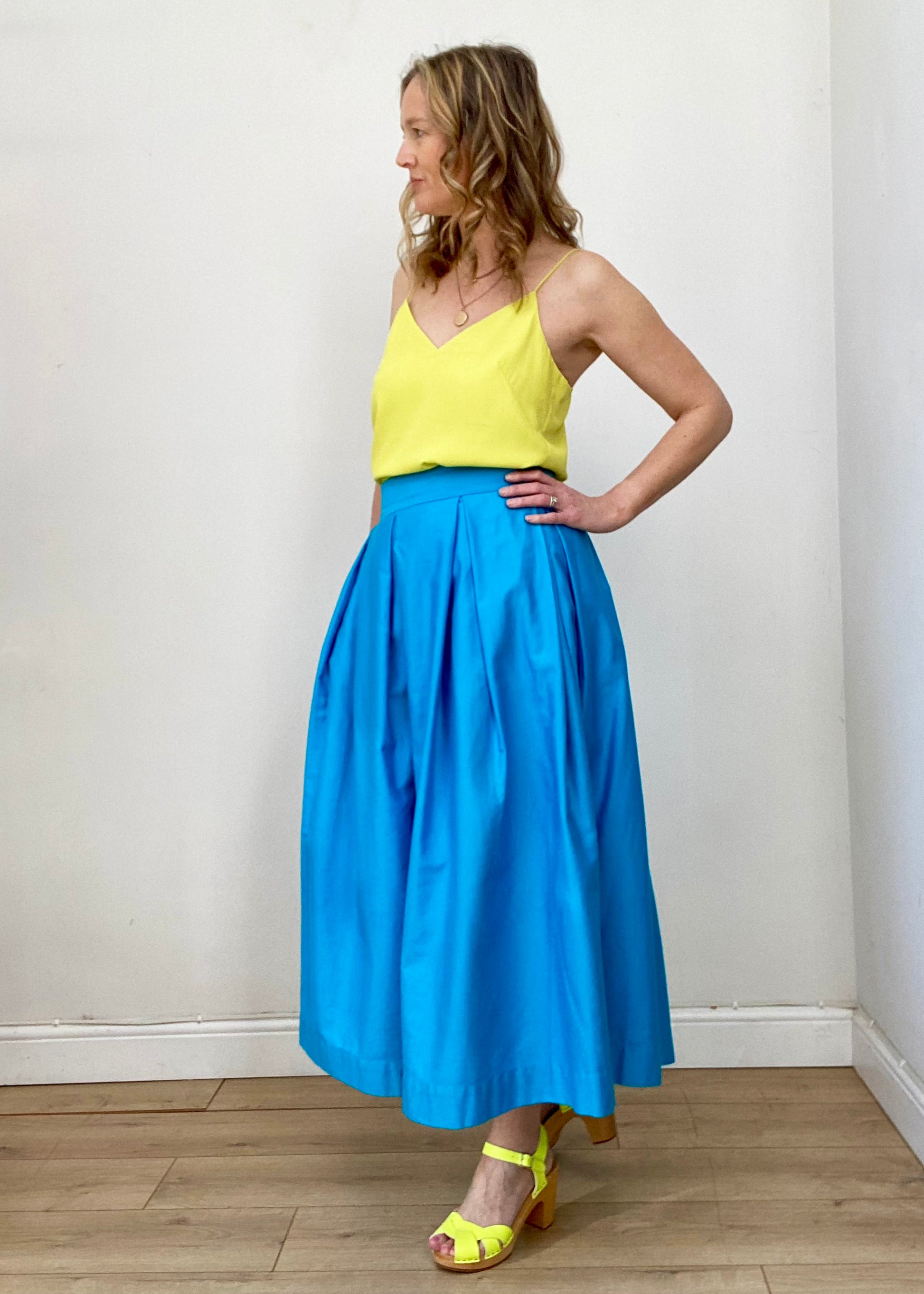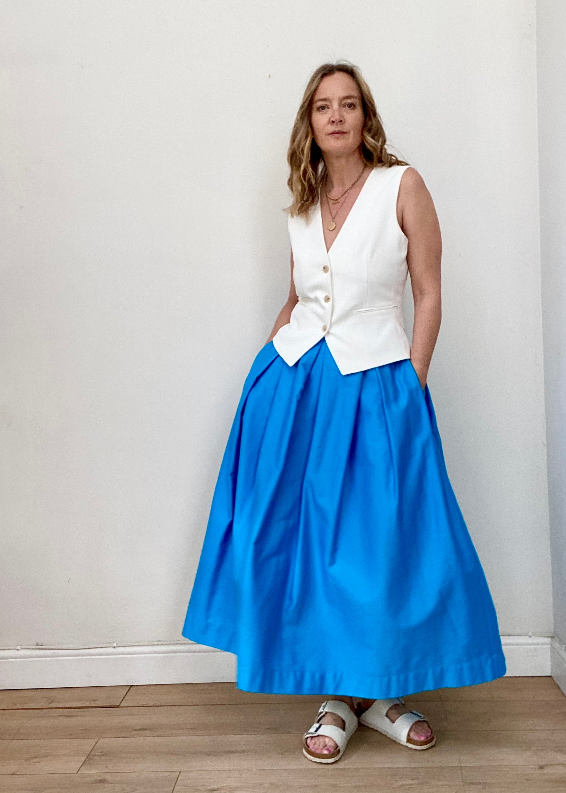 Introducing the 'Diane' skirt in Ocean Blue, made exclusively in England out of beautiful 100% cotton twill.