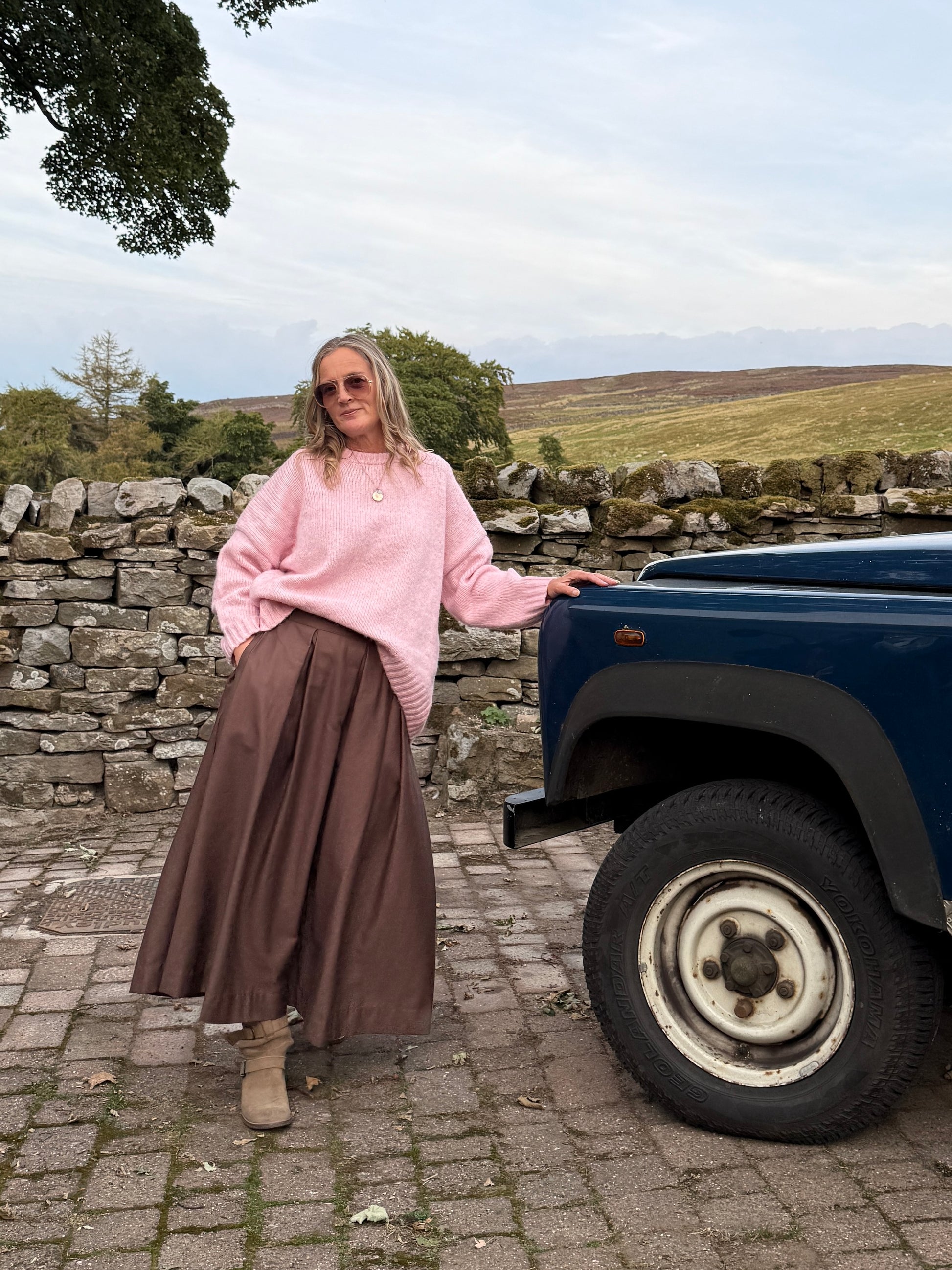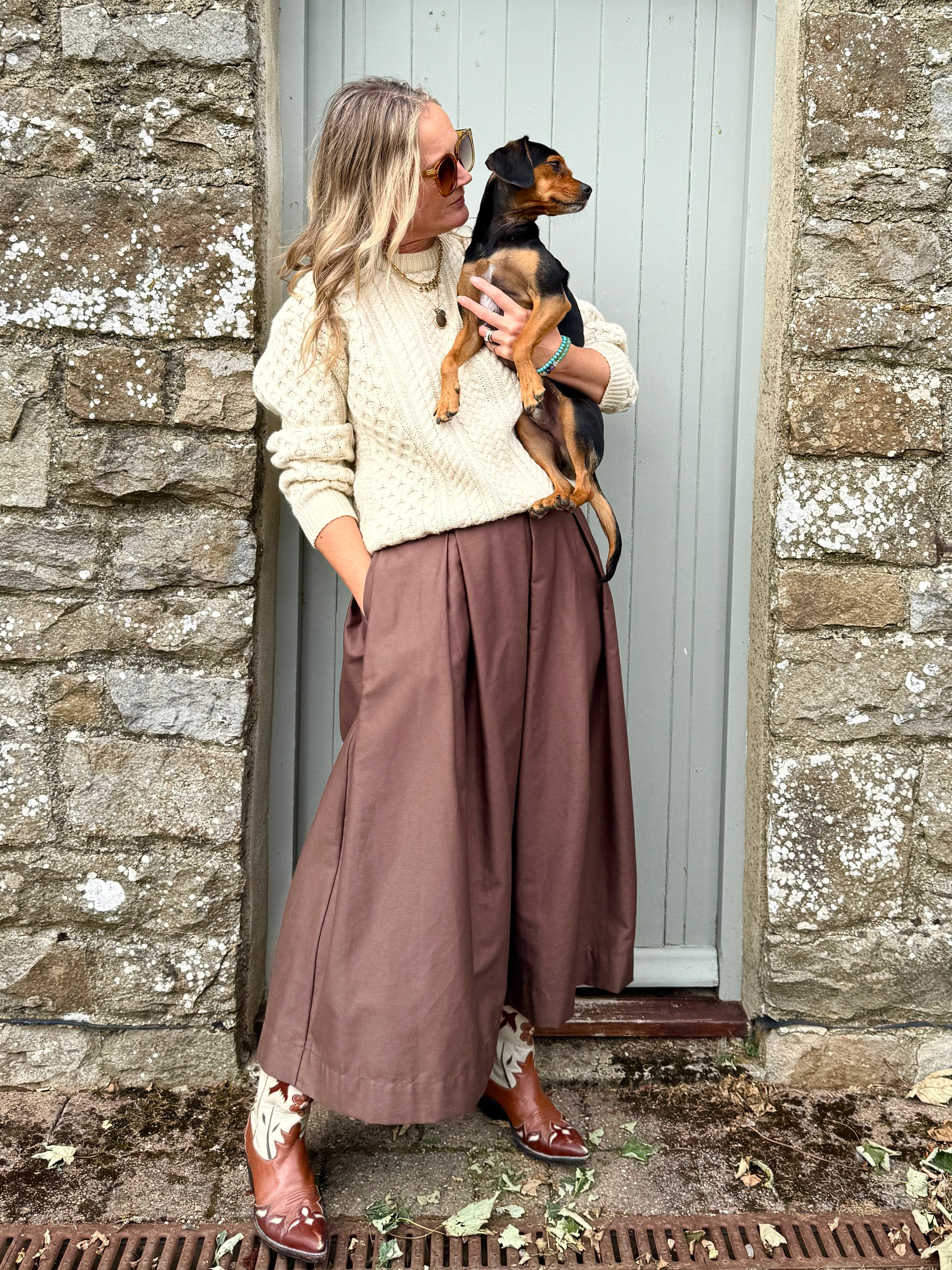 Introducing the 'Diane' skirt in espresso, a stunning deep warm brown, made exclusively in England out of beautiful 100% cotton twill.